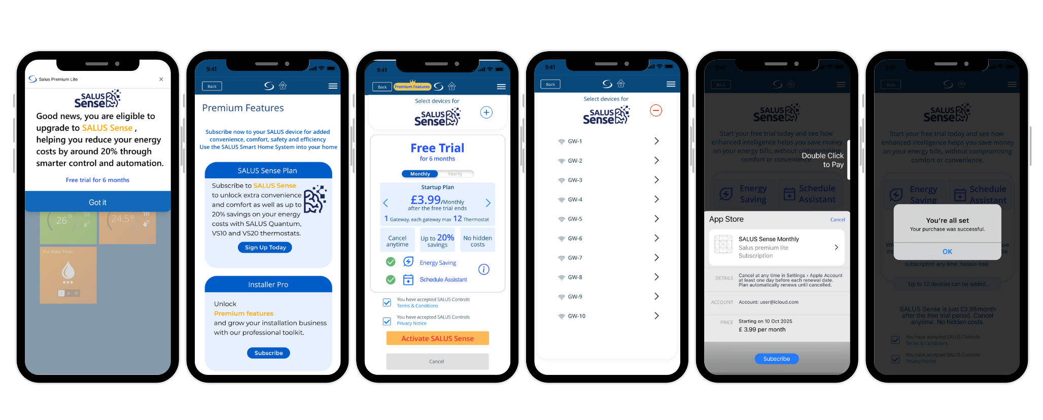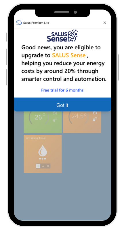 - Abonnieren Sie SALUS Sense (du erhältst in den ersten 6 Monaten kostenlosen Zugang.).