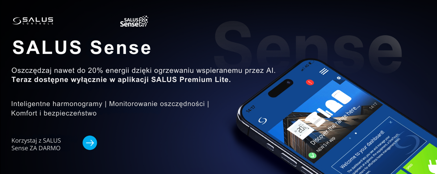 SALUS Sense to opcjonalna funkcja sztucznej inteligencji dostępna w aplikacji SALUS Premium Lite, kompatybilna z termostatami SALUS Quantum oraz modelami VS10 i VS20.